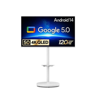 [더함] 스마트 구글 5.0 OS 안드로이드 14 QLED TV 50인치 화이트 + 이동형스탠드 [G504QW-5.0]